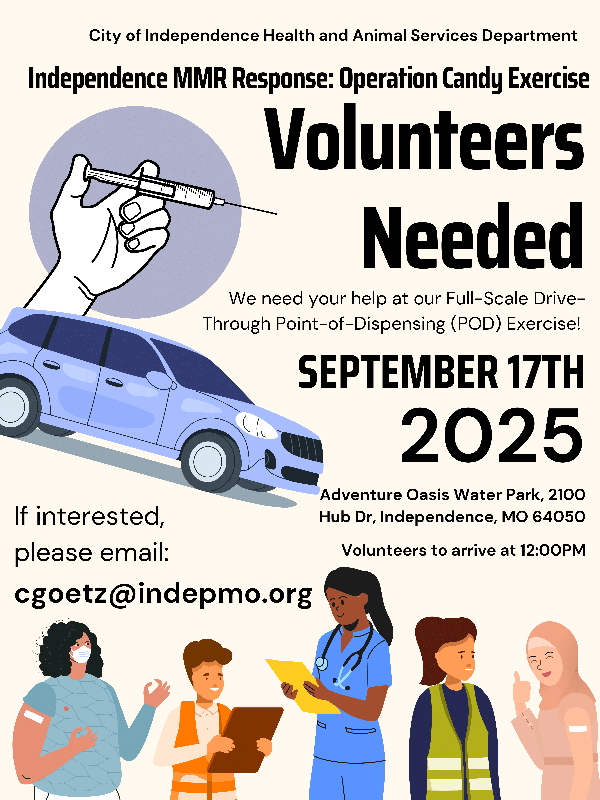 City of Independence Health Department is hosting a Drive-Thru Point of Dispensing Vaccine Exercise on September 17th.